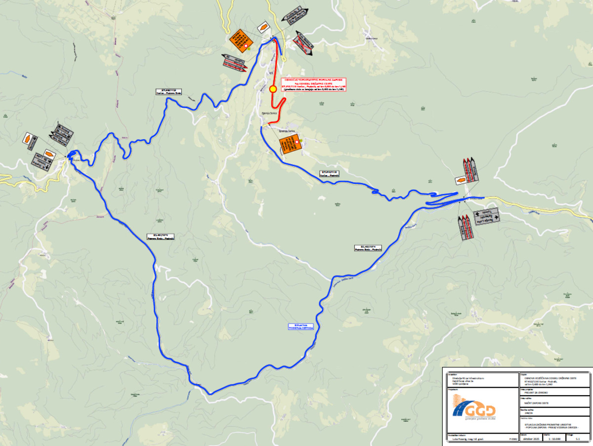Gorenjska gradbena družba d.d. obvešča o popolni zapori ceste zaradi gradbenih in asfalterskih del na RT-910, ods.1130, v km 0,00-1,360 (Rotek) v terminu od 16. 10. do vključno 24. 10. 2025.