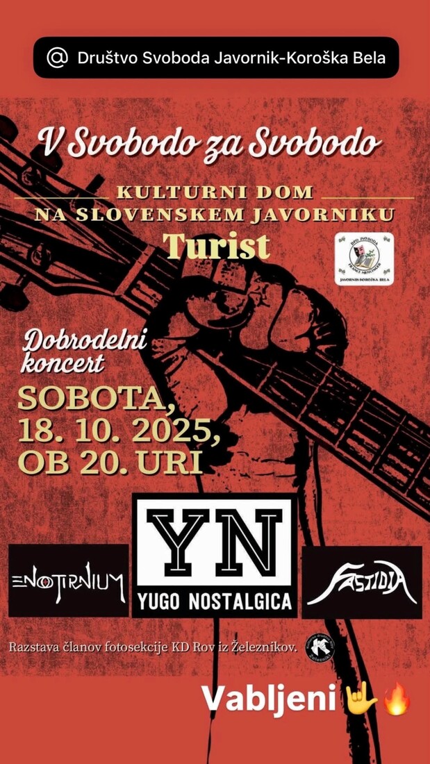V soboto, 18. oktobra 2025, si boste v Kulturnem domu na Slovenskem Javorniku med koncertom skupin Enotirnium, Fastidia in Yugo nostalgica lahko ogledali razstavo članov fotosekcije KD ROV iz Železnikov.