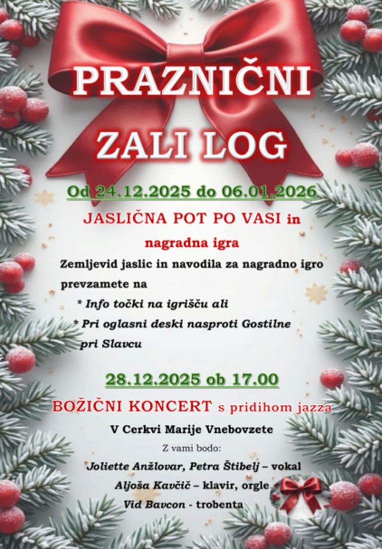 Vabljeni na praznični Zali Log, na sprehod po JASLIČNI POTI in na KONCERT.
