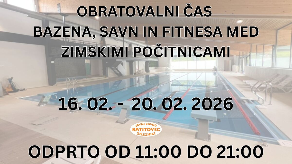 OBRATOVALNI ČAS BAZENA, SAVN IN FITNESA MED ZIMSKIMI POČITNICAMI (16. 2. - 20. 2. 2026):