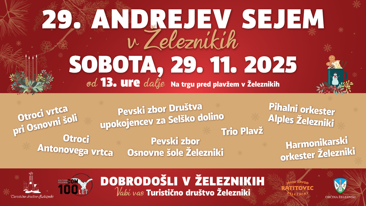 Vabljeni na Andrejev sejem, ki bo v soboto, 29. 11., od 13.00 ure dalje, na trgu pred plavžem v Železnikih.