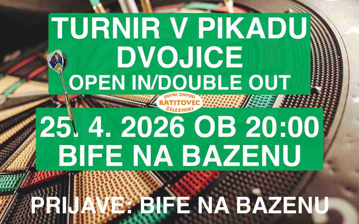 Turnir v pikadu - dvojice. Igra se open in - double out.